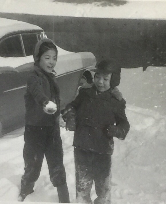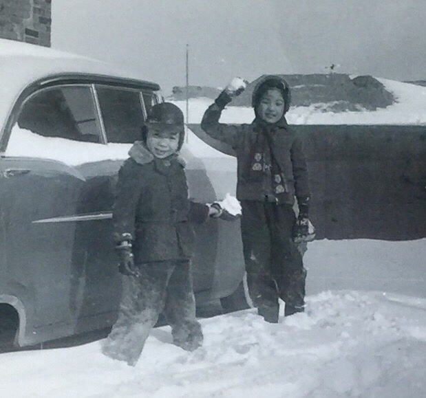 Albert and I made snowmen, snow forts, and snowballs. We made imprints in the snow with our feet, swishing our feet in and out to make a fan shape. We brushed the snow off the cars with our knit gloves. He wore a black aviator cap with flip-up ear covers and I wore a long outgrown, but still serviceable, green knit hat that had a fur strip around the top edge like a headband and two long ties that tied under my chin. The snow felt cold and refreshing against our faces. Our Ai Sook loved his camera and took pictures of us playing in the snow. We were happy, as happy as angels, in the streets of Boston. Hudson Street was covered in white. It was white everywhere, white on the stone stoops where we played flip-up baseball cards in the summer, white on the stoop sides where our mothers sat and chatted on hot, summer nights, white on the parked cars that belonged to other people. White flurries swirled around us and we had tiny snowflakes here and there, on our hair, on our eyelashes, on our noses, on our arms, our pants and in our boots. We smiled at each other, giggling, as we put handfuls of snow on each others’ heads, backs and legs, and rolled in the snow.
