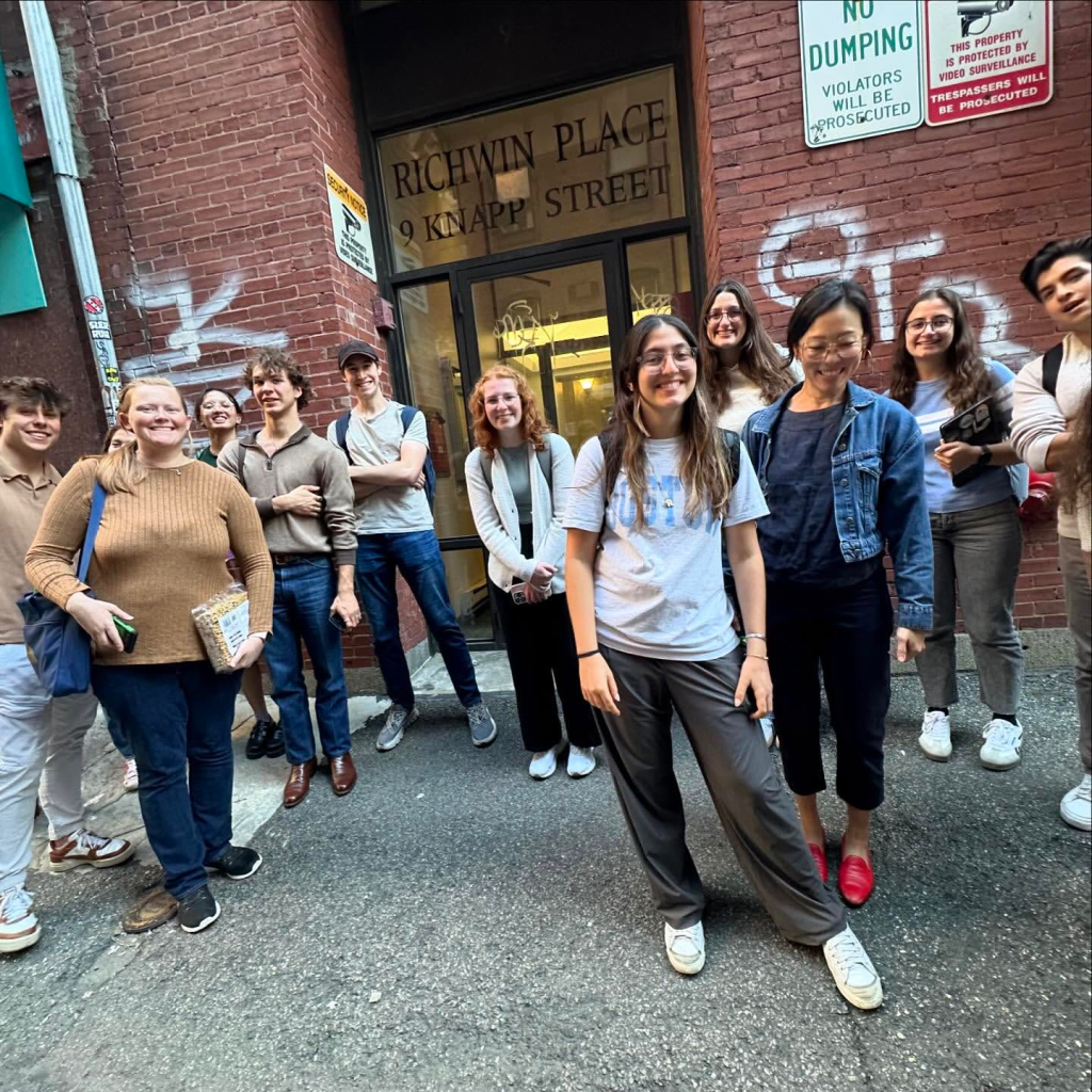 t was such a joy to give these Northeastern University Urban Planning /Architect students , members of NU Asst Professor of Race, Social Justice and the Built Environment , Dr. Lily Song’s “Anti-Displacement Studio,” a walking tour of Small Businesses in Chinatown. We started with “nai cha” Hong Kong style milk tea and pineapple polo buns at 180 Cafe, symbols of anti-colonial resistance , visited with YAN, the street vegetable seller who grows her own vegetables, herbs, and flowers in a community garden in South Boston and carts them fresh to Chinatown everyday to sell , IVY TAN, the herbal store owner at 8A Tyler Street , visited Mr GAO , Chef/owner of NEW WING’S KITCHEN on Hudson where he cooks the most authentic southern Chinese cuisine, snacked on almond cookies at the last Taishanese bakery, HO YUEN Bakery on Beach , took a peek at a modern cafe, CAFE DARQ, owned by the ever -friendly Dutchman, Axel, and his Vietnamese wife, Kathy who travel annually to Vietnam to buy the freshest coffee beans and tea leaves. We ended by walking Knapp Street, once the center of the Garment District and a former Combat Zone prostitution alleyway, where my Breakwater Studio film co-storyteller, Gwen Liu , cafe owner, Axel, and I lived at some point, to show what happens when children are displaced in neighborhoods with limited housing stock, and end up in substandard environments with unsanitary conditions . These students were wonderful in their interest and curiosity! I thoroughly enjoyed teaching them. It was heartwarming to see their smiles and enthusiasm. Many of these students are multi-talented, multi-cultural , multi-lingual, inner city youth who work hard in a school environment with many cooperative work/ study opportunities. I showed them my bay window at 7 Knapp where my TV sat, on which I watched my favorite Westerns and Superheroes , and where I typed and aced my term paper, “ On the Influence of Minor Characters in TO KILL A MOCKINGBIRD,” while prostitutes paraded below me in the alleyway, and strip bars played their loud music . I was determined to fly, to be a Superhero, a Cowgirl who tamed the Wild, Wild West, and in a way, I did exactly that.