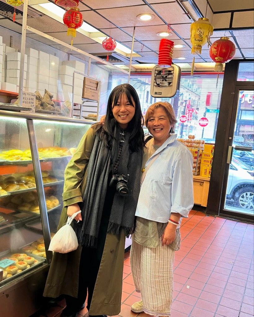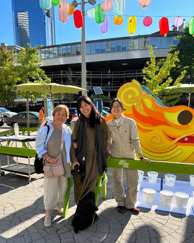Today I had the great pleasure of meeting and getting to know Australian architect, Andrea Lam, the winner of the coveted 2023 Christopher Procter Prize for architectural research. Of Cantonese and Vietnamese heritage, her parents settled in Sydney, Australia, where she was born and raised . She arrived in Boston after doing research in San Francisco’s 4 Chinatowns and became a houseguest of Thai landscape architect/public artist Ponnapa Prakkamakul, aka Gift Ponnapa, (who you see in this photo with her new dragon installation on the Greenway) . Ponnapa asked me to connect with Andrea, who wanted to interview me. From Boston, Andrea will go on to research the Chinatowns of Milan, Italy and Mauritius, off the coast of Africa. We had a wonderful time walking and chatting, visiting the Chinese Consolidated Benevolent Association, where artist Peter Ng is exhibiting, meeting Karen Chen, Executive Director of the Chinese Progressive Association – CPA Boston, Vickie Yue, Director of Operations at the Boston Neighborhood Center, Ashley Yung , Performance Arts Manager at the Pao Arts Center , and went in and out of many small and medium sized businesses, like Ho Yuen Bakery and Kwok Wa Herbal Store, and enjoyed some great cheong fun, rice noodle rolls, and hum siu gok, fried dumplings, and dahn tat, baked custard tarts, at a family owned basement businesses, May’s Cake House. She held my hands as I navigated up and down the steep, tight, and uneven basement steps, without handrails at some small businesses. I appreciated that kindness very much ! It has been my great joy to have worked with both of these international, gifted artists, Ponnapa Prakkamakul and Andrea Lam .