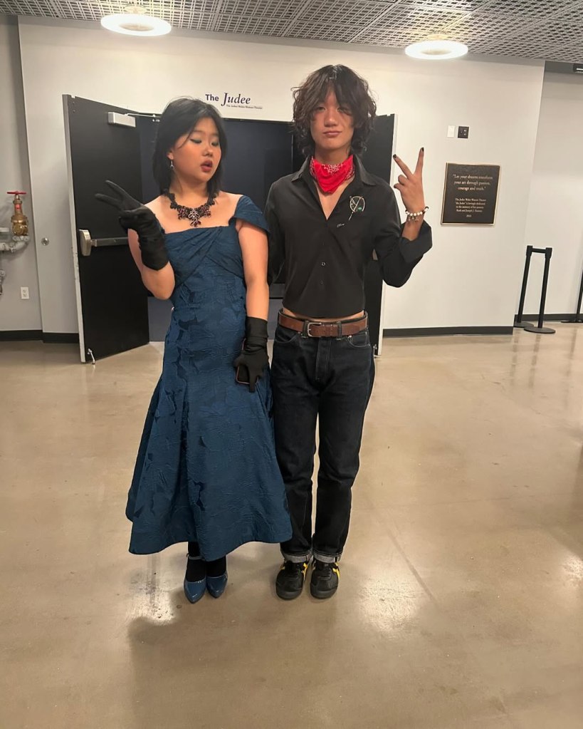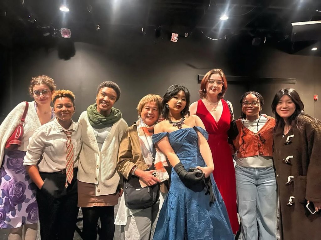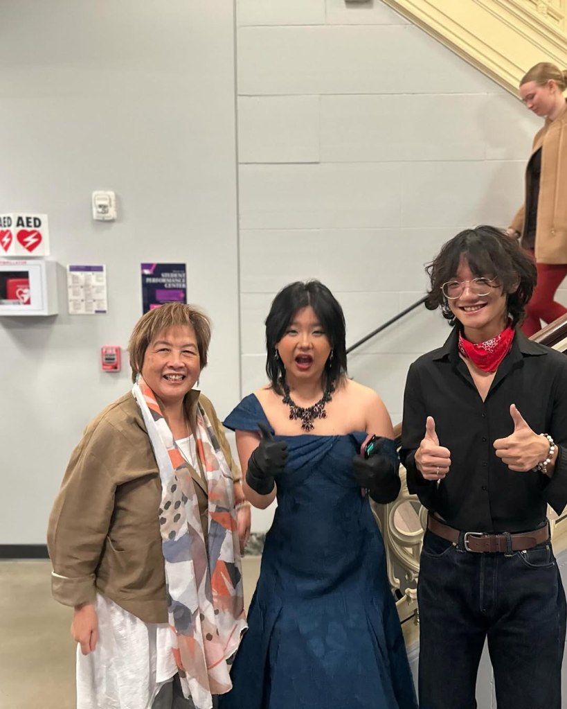 It is an honor to be invited to be Guest Speaker at Emerson College’s oldest film club , Frames Per Second (FPS). Emerson, the first university to establish a partnership with Premiere, an international film festival distributor, will be giving its film students the opportunity to screen their winning film to an international audience. Here I am with Mini 🎥 Fest Manager and Deputy Distribution Manager , Sophia Jade Kong , and her partner and best friend , Ben Liu, who flew in from Toronto . Out of all my nicely posed , proper photos , Sophia Jade chose this one for me to post. She bought her gorgeous blue dress from the thrift store and let Ben wear her shirt ! What a sweet, talented, funny, smart couple! While I posted, she said , “Ben, Cynthia writes whole paragraphs!” In trying to decrease the generation gap , I’m learning from GenZers everyday … Social media customs : do not write whole paragraphs, post photos of funny faces, not proper posed ones ….and don’t bother to buy new clothes , there are plenty of pre-worn clothes around if you look . Boomers can learn from GenZers and vice versa .